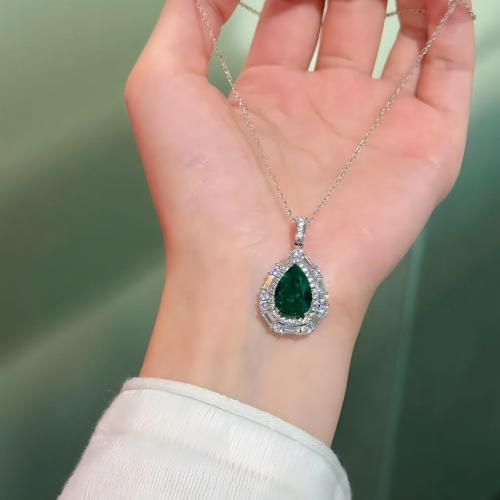 다이아몬드와 보석이 영원하다면, 합성 보석 목걸이는 영원하고 미래지향적입니다. 글로벌 고급 주얼리 소매업체 및 도매 유통업체를 위해 특별히 제작된 이 절묘한 18K 화이트 골드 페어 컷 랩 그로운 에메랄드 목걸이는 귀하의 재고에 매우 수익성 있는 추가 기능을 제공합니다. 실험실에서 생산된 다이아몬드와 원석은 채굴된 다이아몬드와 화학적, 물리적, 광학적으로 동일하여 동일한 숨막히는 광채와 내구성을 제공하면서도 투명하고 윤리적인 기원을 갖고 있습니다.